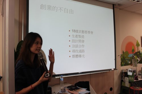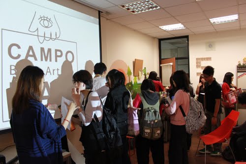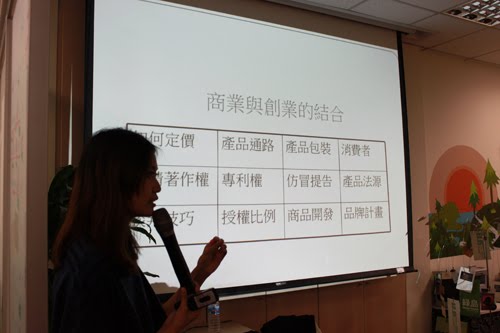 才剛踏進輔大野聲樓,馬上看到 就輔組精心佈置的活動告示牌和沿路上的貼心指示 為了使整個空間呈現創意氛圍,有工作室的感覺,設計師和就輔組的助教們進行的一場小小的改造,原本單調的辦公室頓時活潑熱鬧起來。 同學陸續就坐,多數人來自於企管系,還有新聞廣電系,更有哲學系的同學,看來大家都對創意產業很有興趣,因此親切可愛的助教再次為我們解說整個活動後,講座正式開始 歡迎主講人: CAMPOBAG執行總監 小麥 創作者為什麼需要經紀人? 那你需要嗎? 想要創業當老闆,先從認識自己開始,了解自我人格特質,發揮優點專長,與人合作補強所缺乏的,才有機會成就一番事業。 大家踴躍舉手發言,有的人喜歡寫文章.攝影.做手工藝,有的人認為自己有熱情.有耐性.做事有條理會規劃。 (哇~我覺得他們其實可以組一個團隊,未來合作開公司囉 XD) 那自己創業有什麼自由呢? 是可以無拘無束想做什麼就做什麼? 或是能有更多時間去追求夢想? 歹誌沒那麼簡單! 當老闆可是須習得十八般武藝,從商品最初的設計製造到後期的通路行銷,未必要事必躬親,但也要熟稔每個環節,肩負老闆的使命,這就是創業的不自由。 回到CAMPOBAG的創立,在辦了幾場藝術狂歡市集後,小麥希望能結合這些藝術創作者的能量,以不同形式的創意提案,提供整合性文創服務,遂自己成立公司,Bring Art Go <袋>著藝術一起走~ 當創業與商業結合,須面對大大小小的問題。要尋求客戶打通產品通路,要學會銷售技巧順利把產品賣出去,面對仿冒品又該如何保護創作者的著作權和專利權.....等等。 以商品定價為例 (這張由就輔組重新塗鴉的米奇鰻人物 好逗趣~) 有同學認為可以賣10元,有同學認為可以賣50元,這價錢怎麼來? 背後需考量設計成本.管銷成本.印製成本等,除了考量到自己能賺多少,更要兼顧能否賣出去,許多因素有賴我們實際操作才能理解。 除了賣商品外,還有什麼創意結合呢? CAMPOBAG帶著創作者米奇鰻和出版社合作,用漫畫的方式教小學生英文諺語,也以雙品牌形式和朱宅神一同寫書,最後小麥舉好菌多多的案例,說明創作者觀點和商業行銷觀點的不同,帶動大家熱烈討論,為活動劃下完美句點。