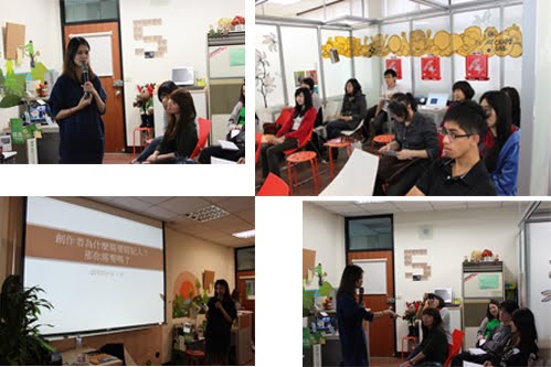 才剛踏進輔大野聲樓,馬上看到 就輔組精心佈置的活動告示牌和沿路上的貼心指示 為了使整個空間呈現創意氛圍,有工作室的感覺,設計師和就輔組的助教們進行的一場小小的改造,原本單調的辦公室頓時活潑熱鬧起來。 同學陸續就坐,多數人來自於企管系,還有新聞廣電系,更有哲學系的同學,看來大家都對創意產業很有興趣,因此親切可愛的助教再次為我們解說整個活動後,講座正式開始 歡迎主講人: CAMPOBAG執行總監 小麥 創作者為什麼需要經紀人? 那你需要嗎? 想要創業當老闆,先從認識自己開始,了解自我人格特質,發揮優點專長,與人合作補強所缺乏的,才有機會成就一番事業。 大家踴躍舉手發言,有的人喜歡寫文章.攝影.做手工藝,有的人認為自己有熱情.有耐性.做事有條理會規劃。 (哇~我覺得他們其實可以組一個團隊,未來合作開公司囉 XD) 那自己創業有什麼自由呢? 是可以無拘無束想做什麼就做什麼? 或是能有更多時間去追求夢想? 歹誌沒那麼簡單! 當老闆可是須習得十八般武藝,從商品最初的設計製造到後期的通路行銷,未必要事必躬親,但也要熟稔每個環節,肩負老闆的使命,這就是創業的不自由。 回到CAMPOBAG的創立,在辦了幾場藝術狂歡市集後,小麥希望能結合這些藝術創作者的能量,以不同形式的創意提案,提供整合性文創服務,遂自己成立公司,Bring Art Go <袋>著藝術一起走~ 當創業與商業結合,須面對大大小小的問題。要尋求客戶打通產品通路,要學會銷售技巧順利把產品賣出去,面對仿冒品又該如何保護創作者的著作權和專利權.....等等。 以商品定價為例 (這張由就輔組重新塗鴉的米奇鰻人物 好逗趣~) 有同學認為可以賣10元,有同學認為可以賣50元,這價錢怎麼來? 背後需考量設計成本.管銷成本.印製成本等,除了考量到自己能賺多少,更要兼顧能否賣出去,許多因素有賴我們實際操作才能理解。 除了賣商品外,還有什麼創意結合呢? CAMPOBAG帶著創作者米奇鰻和出版社合作,用漫畫的方式教小學生英文諺語,也以雙品牌形式和朱宅神一同寫書,最後小麥舉好菌多多的案例,說明創作者觀點和商業行銷觀點的不同,帶動大家熱烈討論,為活動劃下完美句點。